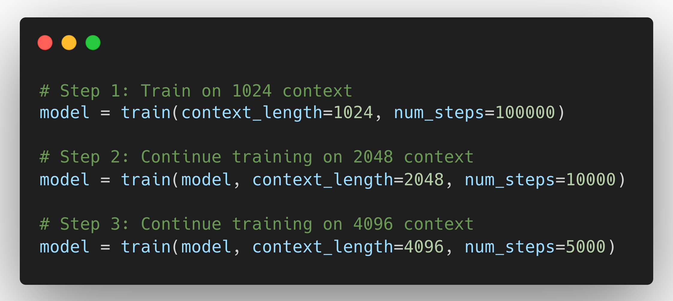 Cost: Expensive. Training on longer sequences is way more expensive (remember O(n²)).