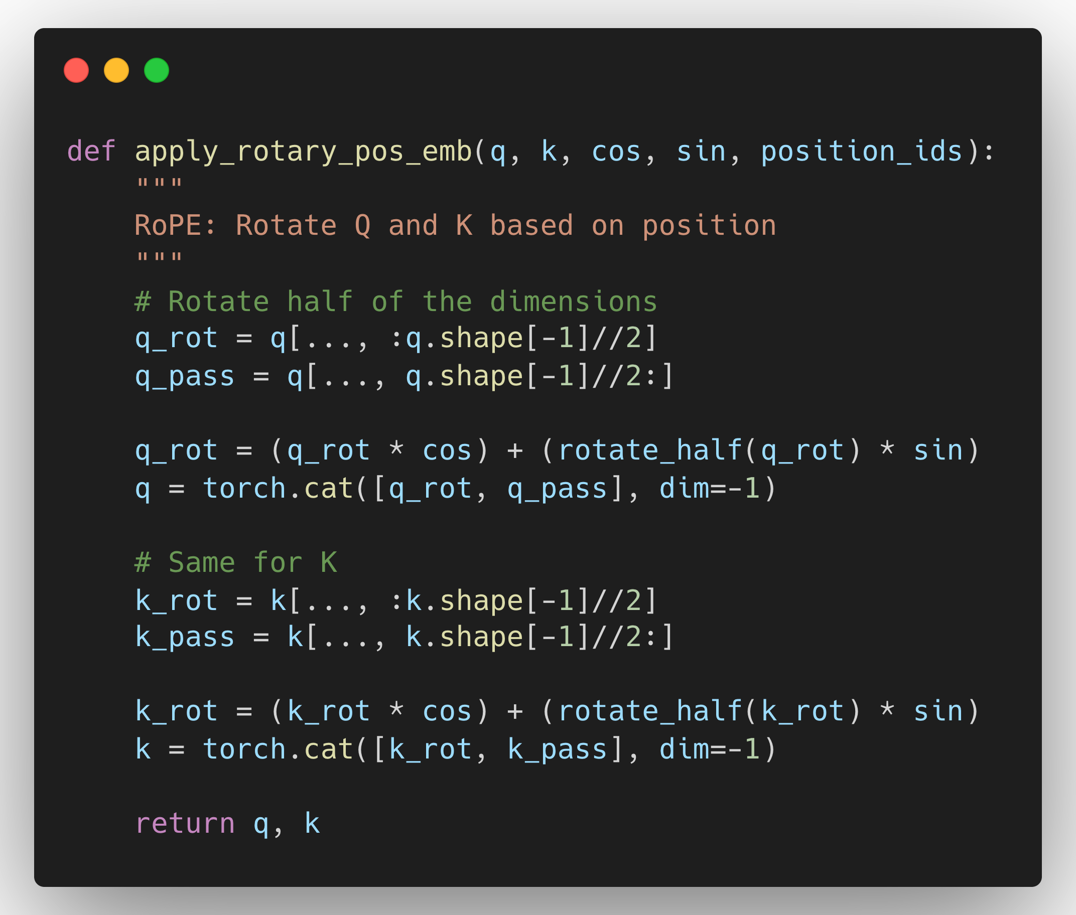 Why RoPE is better: It's a mathematical operation, not a lookup table. So it can extrapolate to positions it never saw during training.